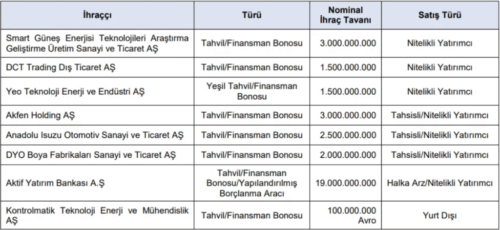 Söz konusu ihraçların detaylarına ve tüm şirket listesine SPK’nın yayımladığı resmi bültenden ulaşılabilir.